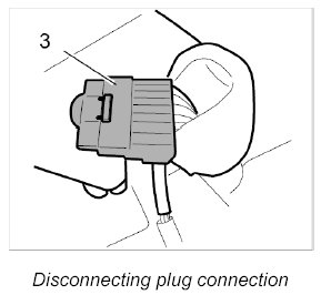 6. Carefully pull the plug connection -3- out of the holder and pull it apart.