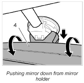 7. Fold mirror downwards -4- and push down from the front windscreen bracket.