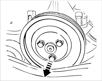 4. Tighten the outer Torx(R) screws (M8 x 12) -Arrows- on the pulley.