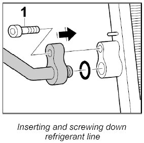 2. Insert compressor-condenser line into the line to the compressor and fasten with the fastening screw -2-.