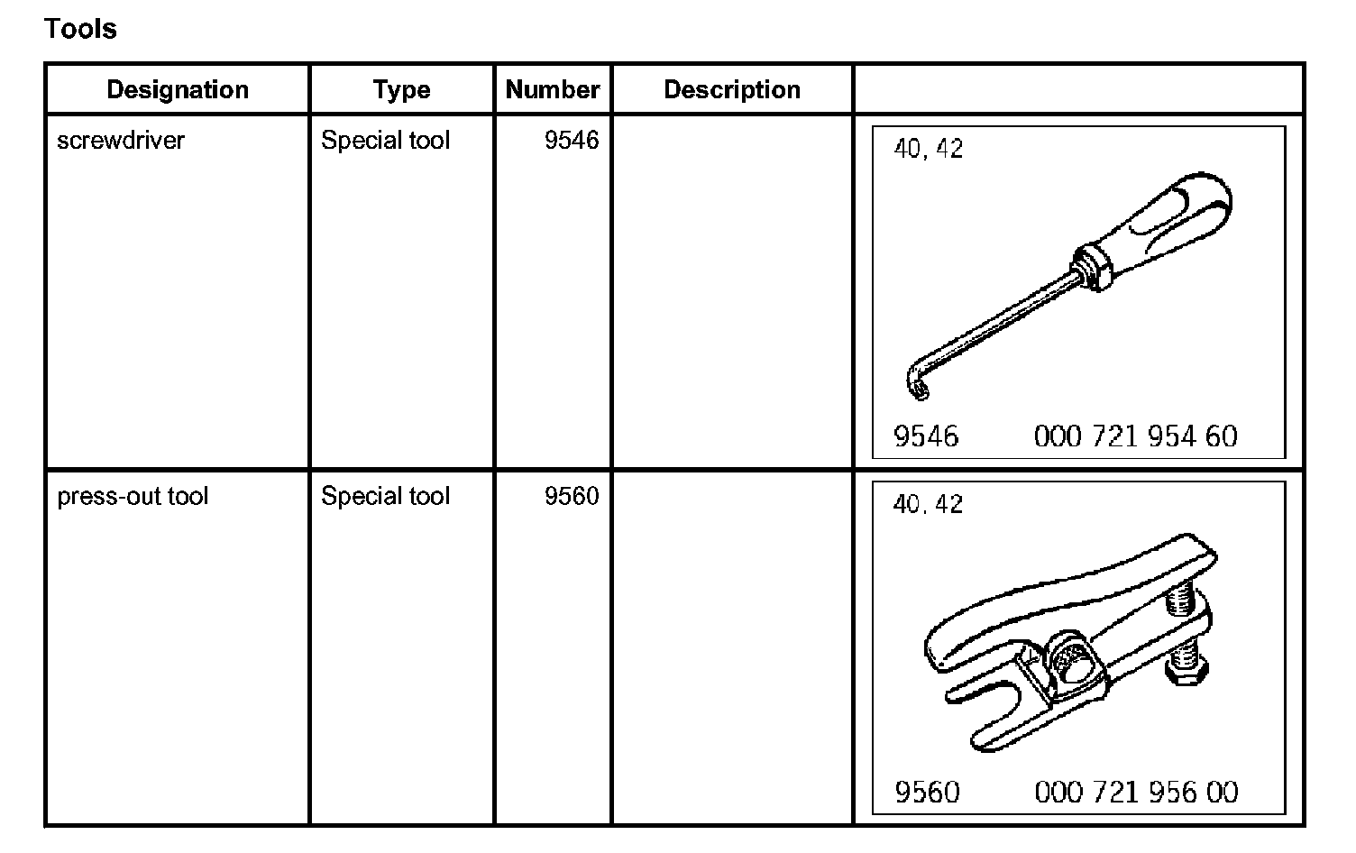 3. Loosen tie rod and control arm at wheel carriers and press off the ball joints with special tool press-out tool 9560. When loosening the lock nuts, counter at the ball-joint pins with special tool screwdriver 9546 (Torx screwdriver).