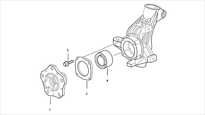 1.3. Press new wheel bearing -4- into the new (heated) wheel bearing housing and complete the wheel bearing housing.
