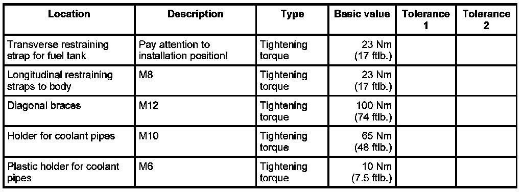 4. Place transverse restraining strap at the correct position on the tank and secure with two M8 screws. - Tightening torque: 23 Nm (17 ftlb.)