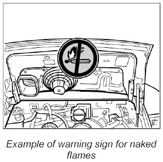 1. Place a warning sign in a clearly visible position in the work area or on the vehicle.