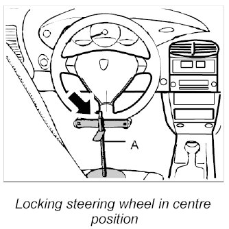 3. Move steering wheel to centre position (front wheels straight ahead) and lock it with the steering-wheel holder.
