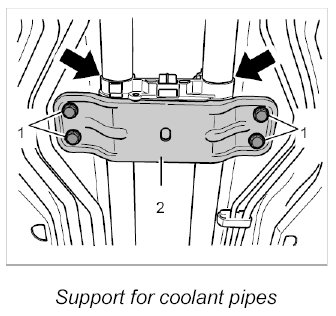 6. Fit coolant pipes in centre tunnel. Secure sheetmetal holder. - Tightening torque: 65 Nm (48 ftlb.)