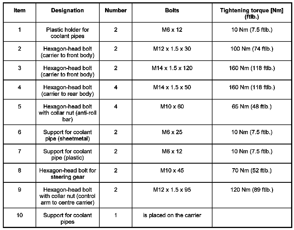 1. Install front-axle carrier