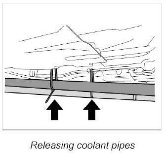 17. Secure coolant pipes with a tie-wrap.