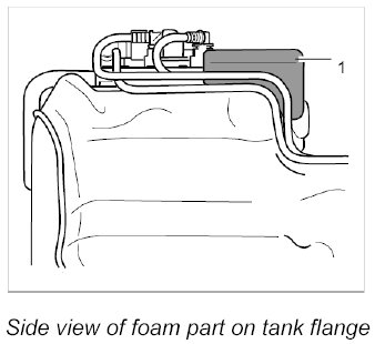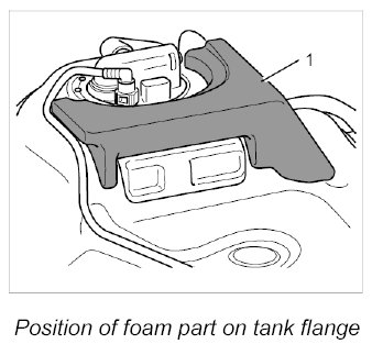 1. Stick foam part -1- to the fuel tank flange if necessary.