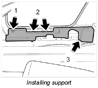 3. Unscrew fastening screws -2- and nuts -3- and carefully pull the support up and out of the retaining points.