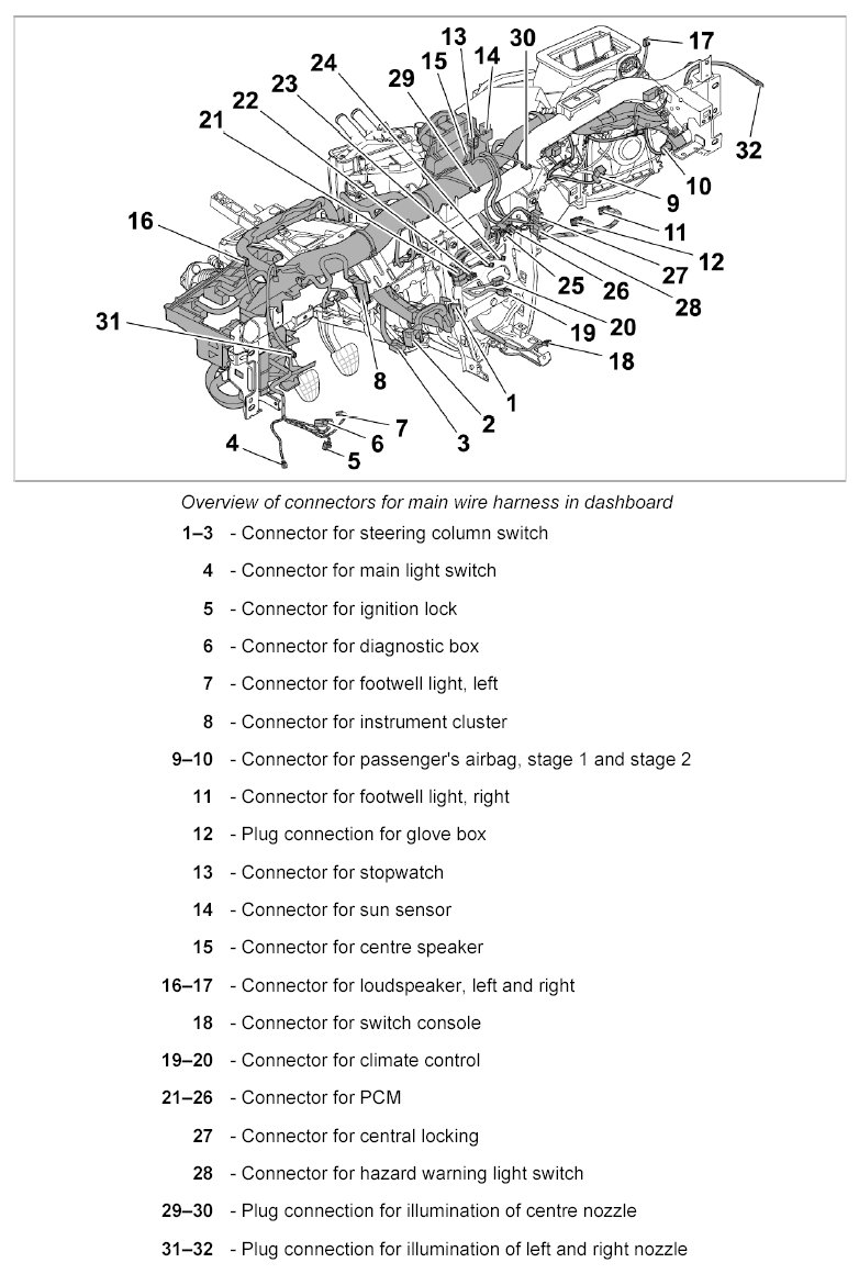 24.1. Clip in wire harness for telephone control unit.