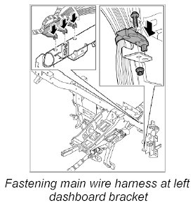 3. Fasten main wire harness at left dashboard bracket.
