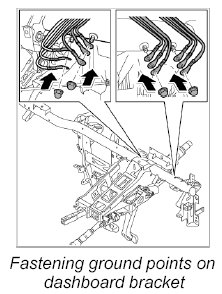 7. Fasten ground points on dashboard bracket.