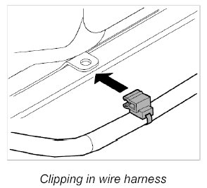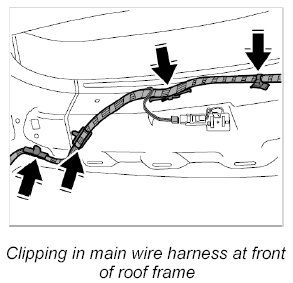 10. Clip in main wire harness at front of roof frame.