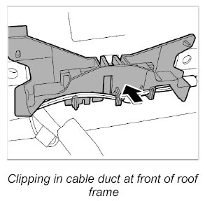 11. Clip in cable duct at front of roof frame.