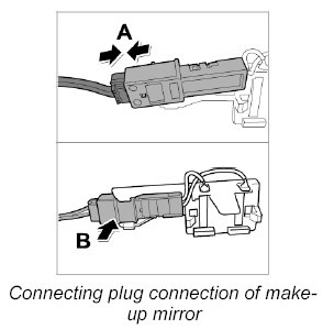 12. Connect plug connection of make-up mirror, left and right -87 and 88-.