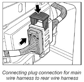 32. Connect plug connection between main wire harness and rear wire harness at the left and right -33 and 34- and lock it.