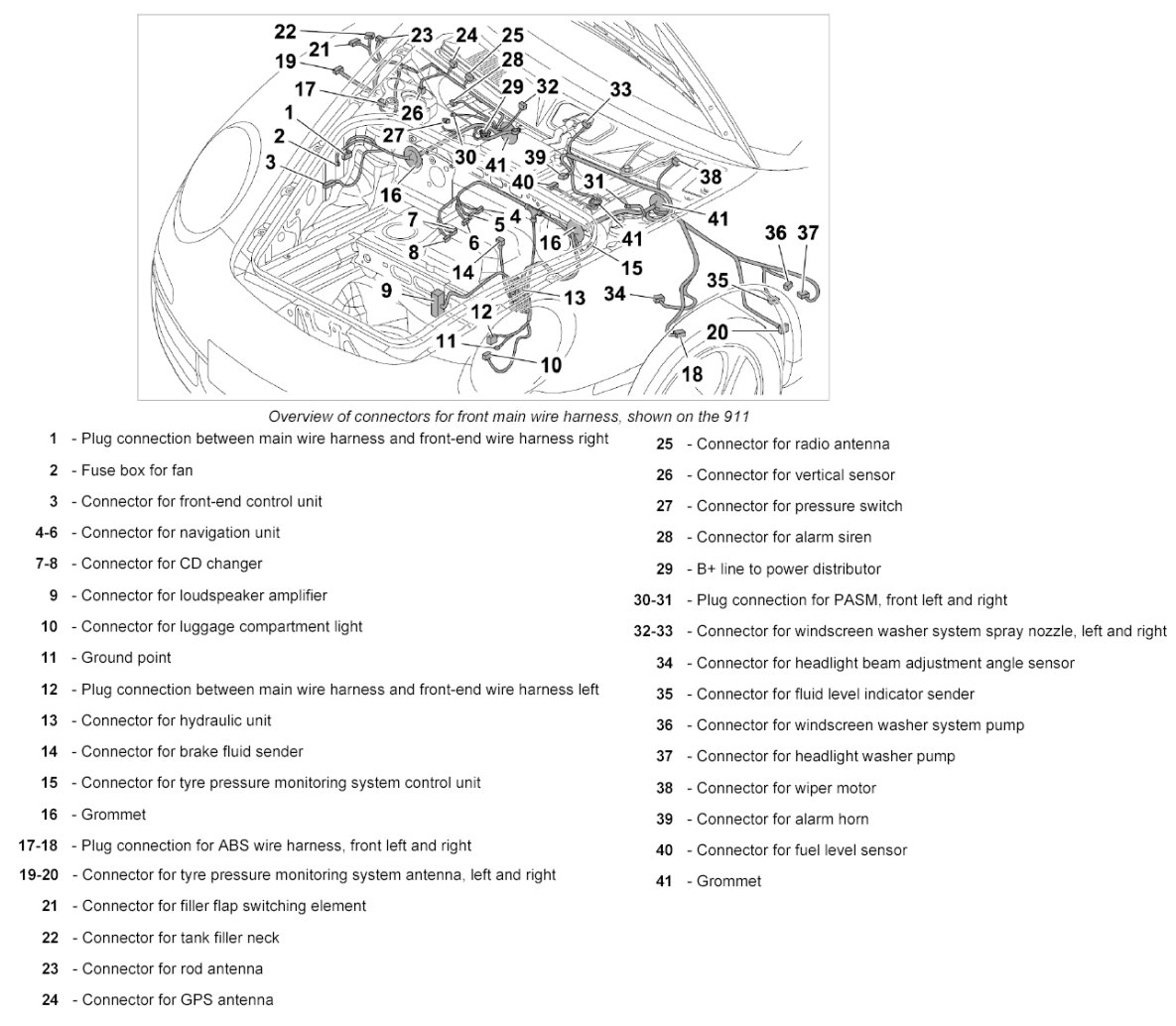 31. Push together plug connection between main wire harness and front-end wire harness, left -12- until it engages securely. Clip in connector socket.