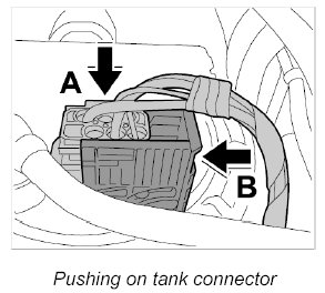 20. Push on connector for filler flap switching element -21- until it is felt to engage.