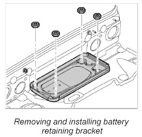 5. Position battery retaining bracket and secure with the four fastening nuts.