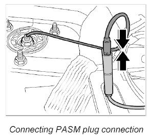 10. Connect plug connections for PASM, front left and right -30 and 31- until they are felt to engage.