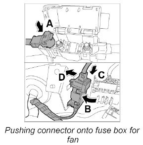 33. Push connector onto fuse box for fan -2-.