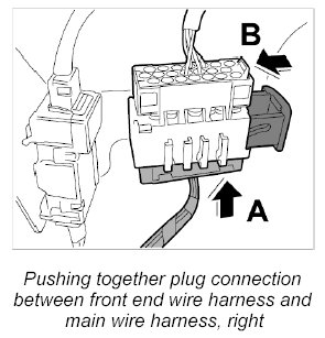 34. Push together plug connection between main wire harness and front end wire harness, right -1-.