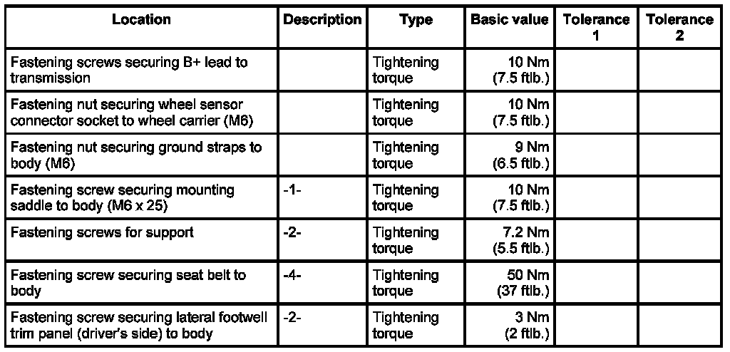 - Tightening torque: 9 Nm (6.5 ftlb.)
