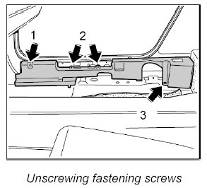 1.2. Unscrew the three fastening screws -2- and take off the footwell trim panel -3- ( -arrow B- ).