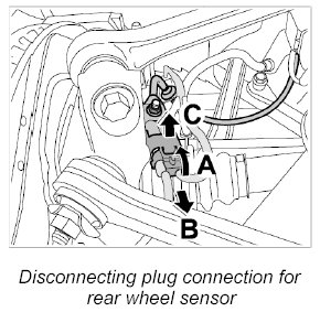 18. Disconnect plug connection for rear wheel sensor -25- at left and right.