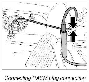 6. Disconnect PASM plug connection -9- at left and right.