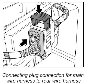 22. Push plug connection for main wire harness to rear wire harness -1- together at left and right.