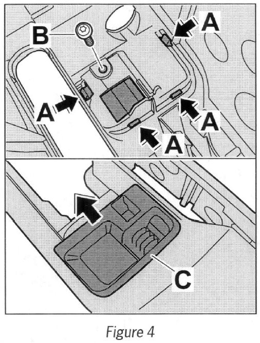 1.6.3 Press locking lugs --> Figure 4 -A- in and remove insert for locking mechanism --> Figure 4 -C-.