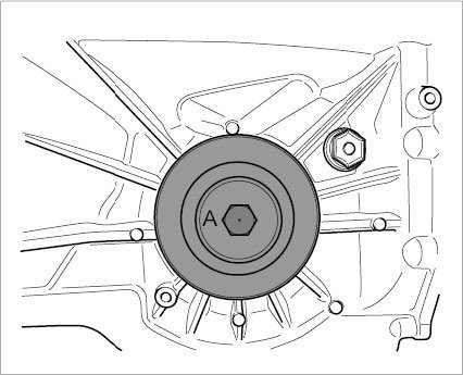 3. Hammer the sealing ring along with pressure piece 9734 completely into the transmission by hitting the hexagon-head bolt.