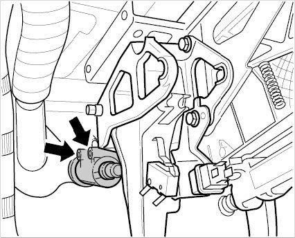 2. Carefully pull off the connector from the clutch pedal switch (and interlock switch if necessary) -Arrows-.