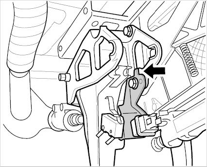 7. Pull out bracket for clutch power spring to the left and take out the clutch pedal.