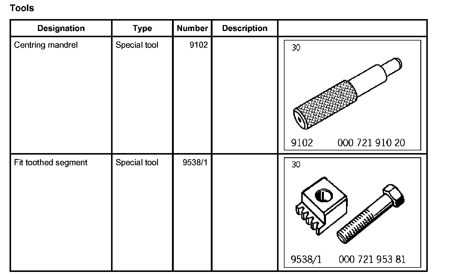 1. Fit toothed segment 9538/1 -1-.