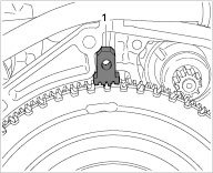When loosening the clutch pressure plate, ensure that the stop on the adjustment mechanism -arrow- is detached from the housing. The stop must dip loosely into the housing as far as the block. Press the stop towards the flywheel, if necessary.