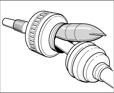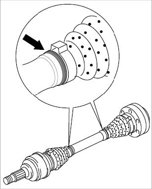 Regrease the CV joints with special grease if necessary. On the wheel-side joint, press -the special grease- through the bellows holder into the joint.