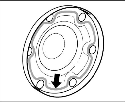 7.1. Coat sealing surface of lid -arrow- and bellows holder with special sealant.