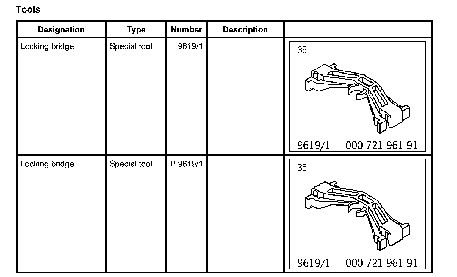 2. Locking bridge 9619/1 must be fitted on the gearshift bracket.
