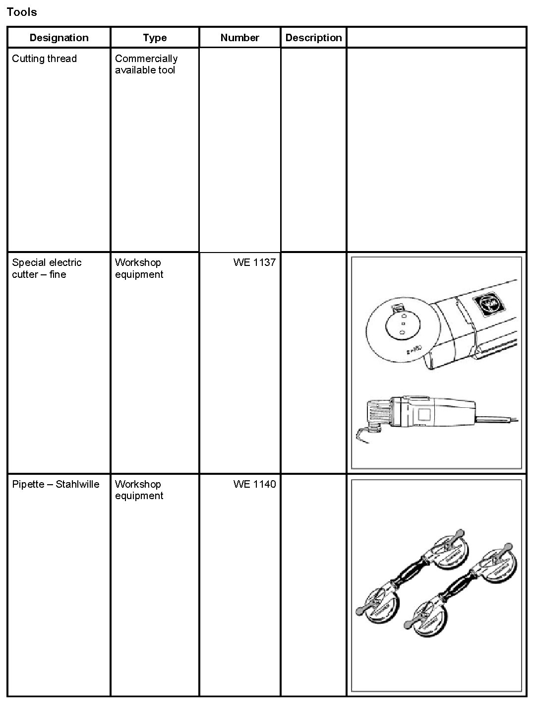 The following tools and materials are required for removing and installing the windscreen with 2-component adhesive: