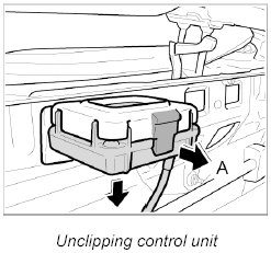 1. Unclip control unit from the holder -A-.
