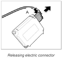 2. Release electric connector -A- and remove it from control unit.