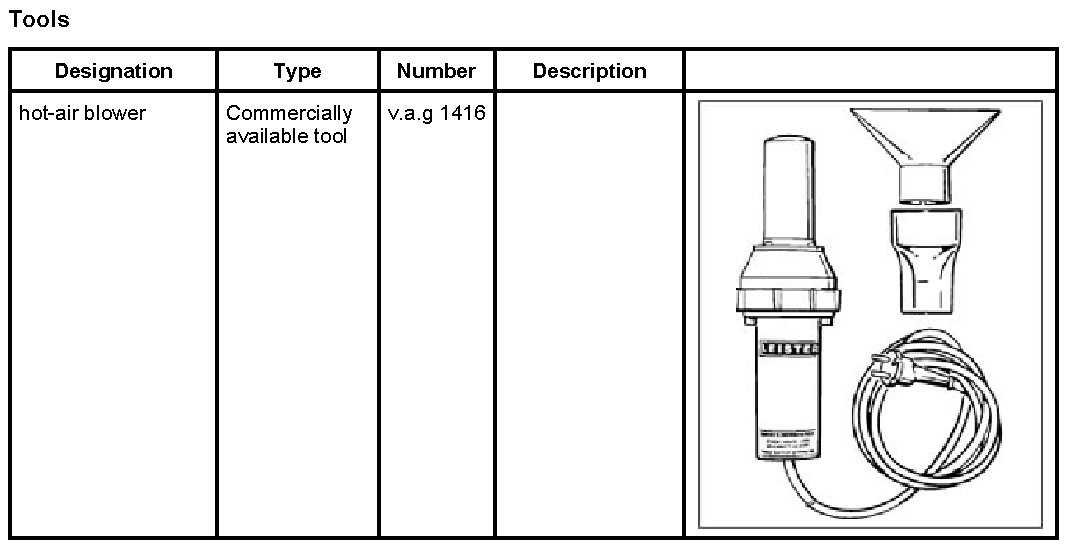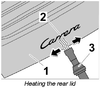 1.1. Heat the rear lid -1- close to the logo -2- using the hot-air blower v.a.g 1416 -3-.