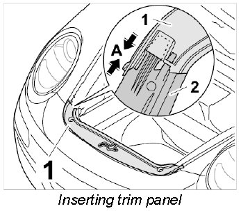 2. Insert trim panel for lock support -1- sideways into the cover for the wing flange -2- (-arrows A-).