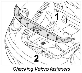 3. Lift off trim panel for lock support -1- and press Velcro fasteners -2- securely onto the front apron again using a suitable tool.