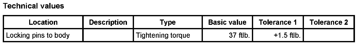 3. Position stop -2- and screw down locking pins -1-. Tightening torque: 37 ftlb.+1.5 ftlb.