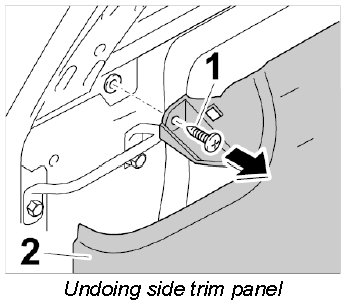3. Unscrew fastening screw -1- from the side trim panel -2-.