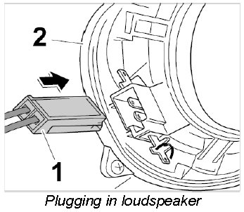 1. Plug in the electric plug connection -1- on the loudspeaker -2-.